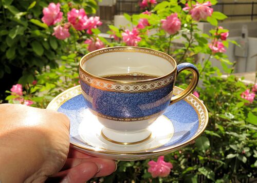 今日の宝塚は 14時現在 23.3℃、快晴です。次男が東京から帰省し賑やかな毎日です。 通常通り日課のコーヒー豆ゴリゴリを挽き終わると 妻が淹れてくれたコーヒーを飲みます。庭のバラと一緒にパチリ。 庭の隅のガーデンポッドに植えていたイチゴが赤くなりま…