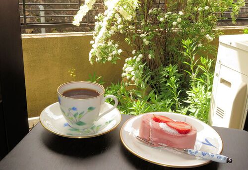 今朝の宝塚は生憎の曇り空ですが、外気温は 10時現在 21.7℃ と心地よいです。先日 妻が新しい茶器を買ってきました。綺麗なのですが 金ぴかすぎて 朝に飲むには似合わない感じがします。アフターヌーン ティタイム用?(笑) コーヒーの奥に見えるのはイチゴ…