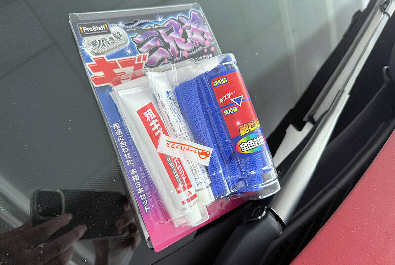 使ったのは オートバックで売られていた コンパウンドセットです。妻の素人作業でも 目立たなくなりました。(笑)